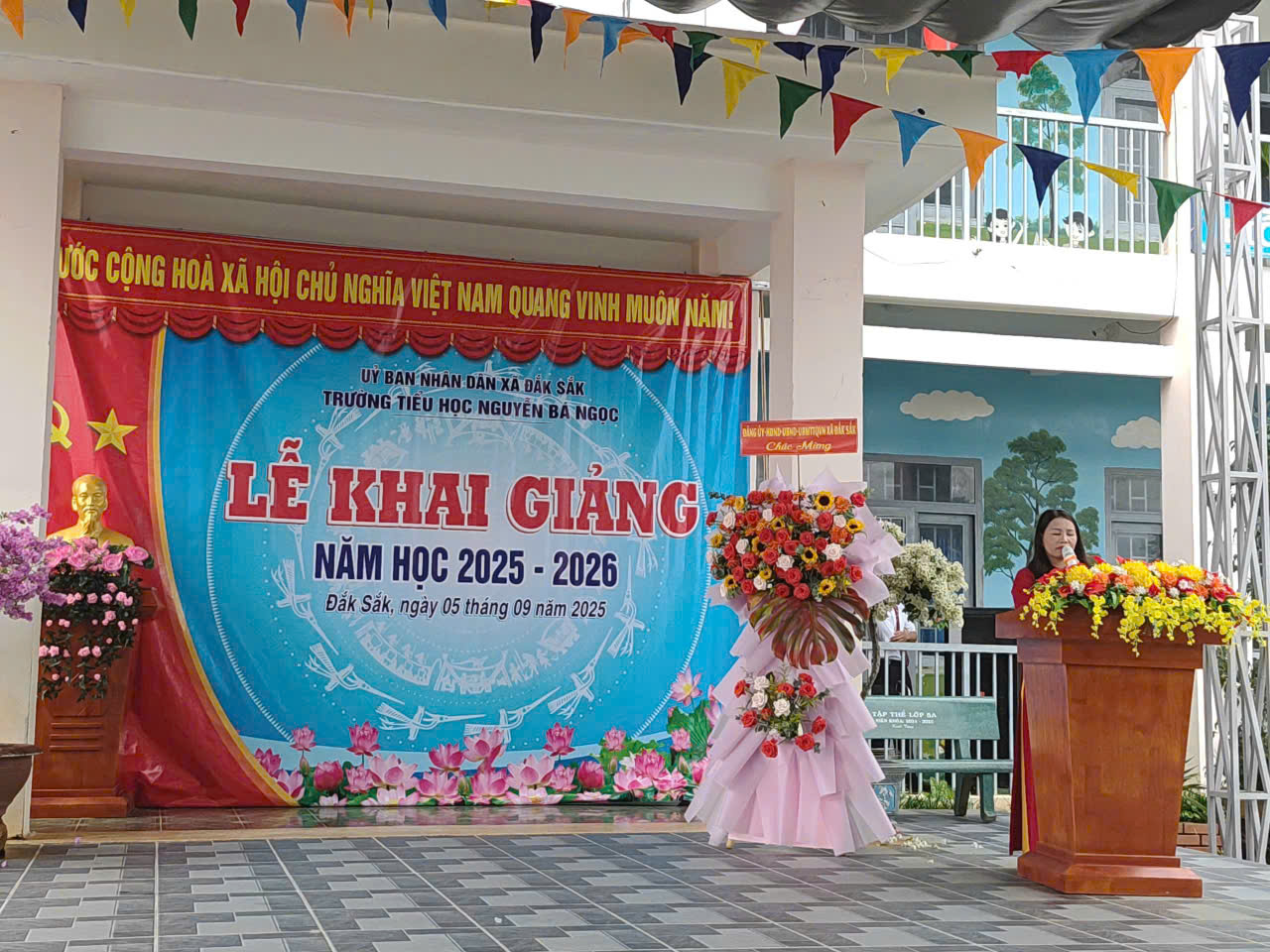 Tiếng trống trường đã điểm, khai giảng năm học mới 2025-2026. Lễ khai giảng đặc biệt! kỉ niệm 80 năm thành lập của Bộ Giáo dục (1945- 2025)Đại diện lãnh đạo xã Đăk Săkcó Đồng chí Nguyễn Ngọc Hậu-UV thường vụ đảng ủy – Phó chủ tịch ủy ban nhân dân xã;Đ/c Lê Mạnh Đạt- PT phòng kinh tế; Đ/c Hoàng Văn Nghiệp- CV phòng VH-XH đã về thăm tặng hoa và quà chúc mừng, cảm ơn sư thầy đại đức Thích Chiếu Quang đã tặng hoa chúc mừng, cảm ơn Hội dê vàng 1979 Krông Nô đã tặng 15 suất quà cho học sinh nghèo,cảm ơn tất cả phụ huynh đã dành thời gian tham dự buổi lễ.