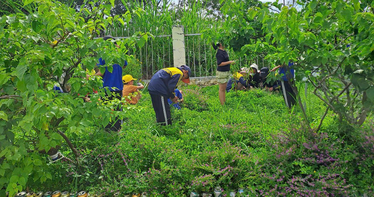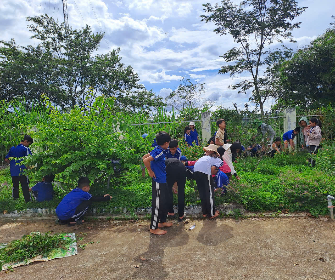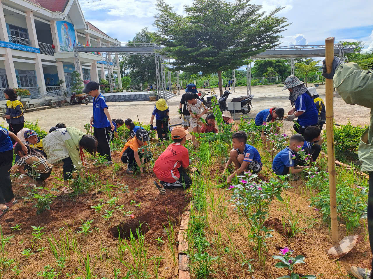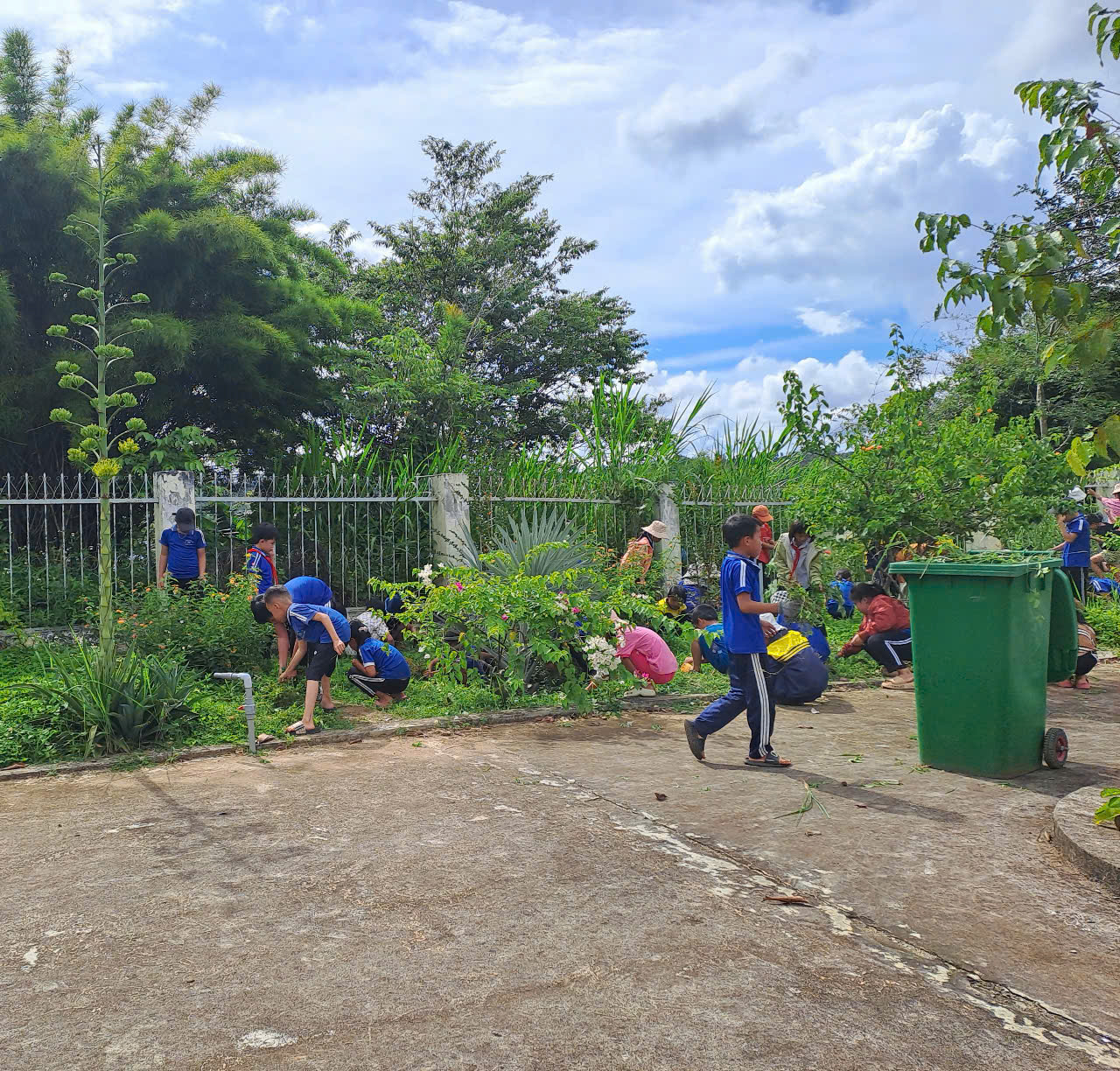 Tập thể thầy cô và học sinh cùng xây dựng khuôn viên nhà trường ngày càng thêm xanh- sạch- đẹp.
