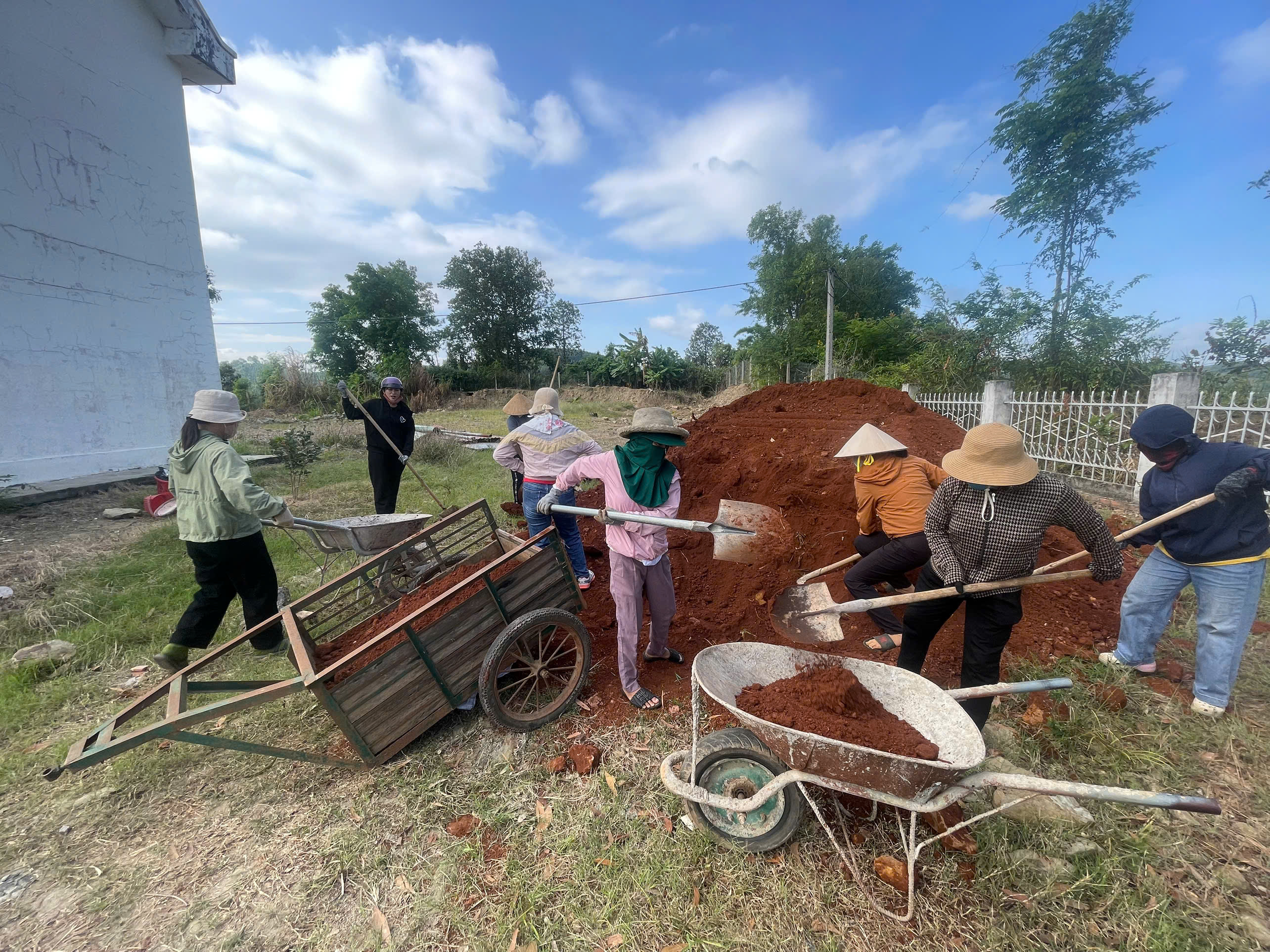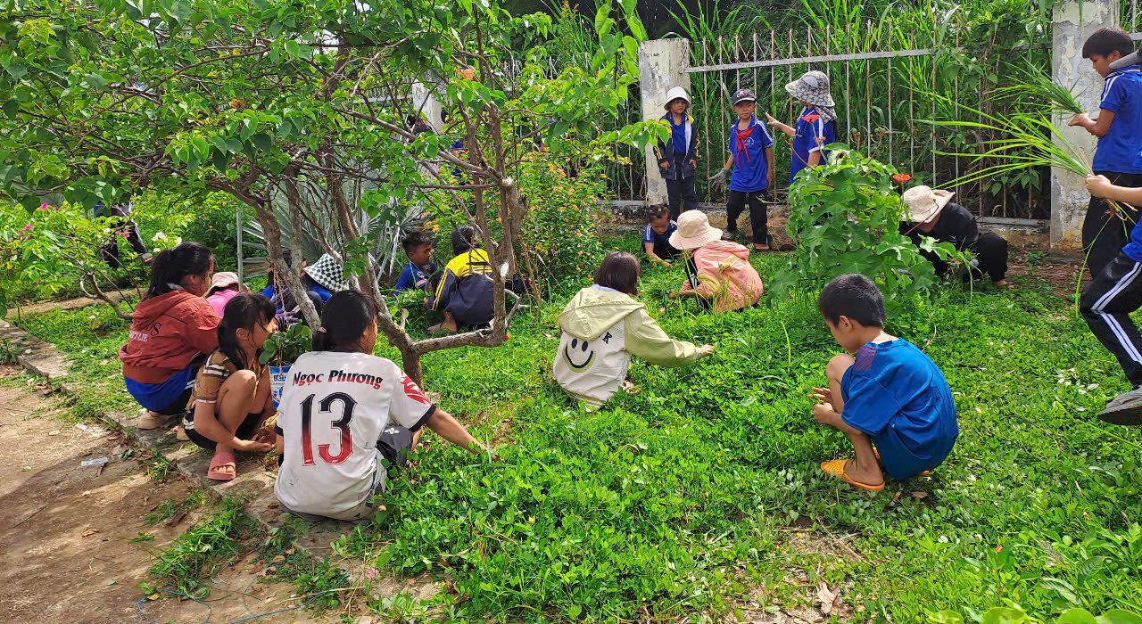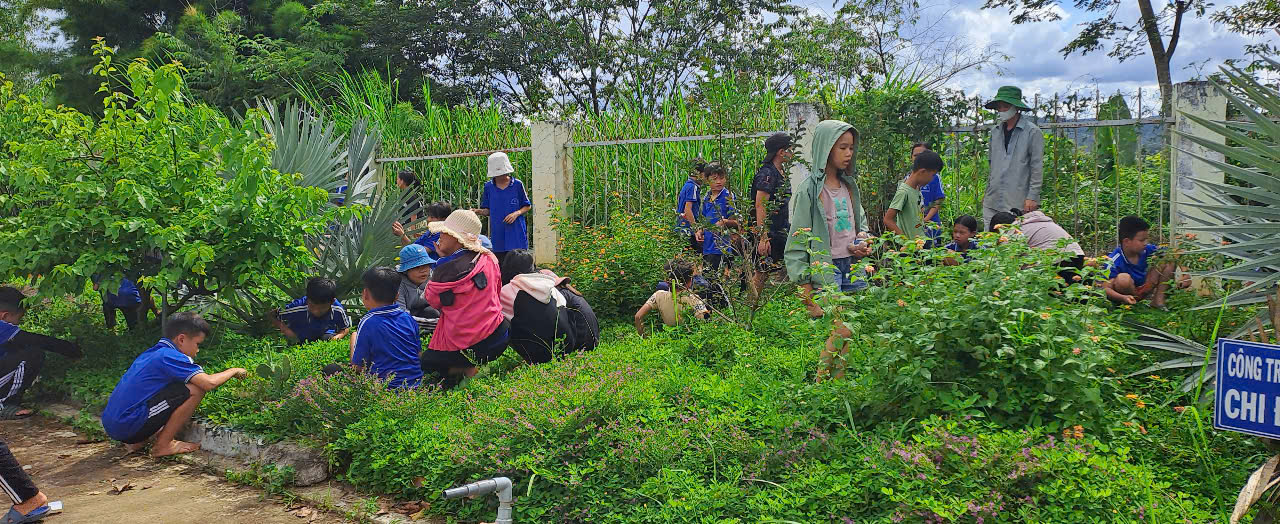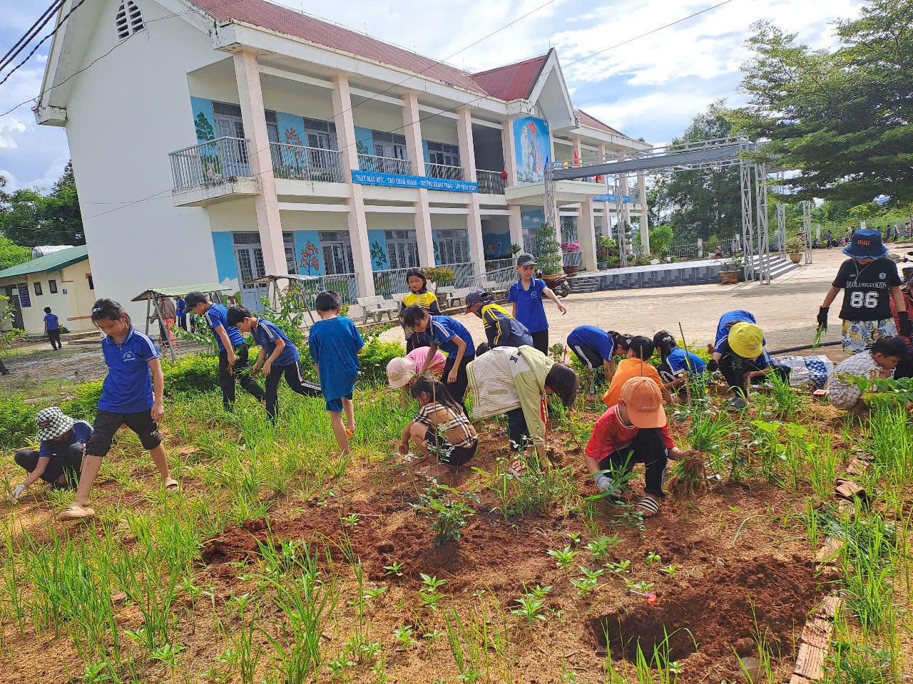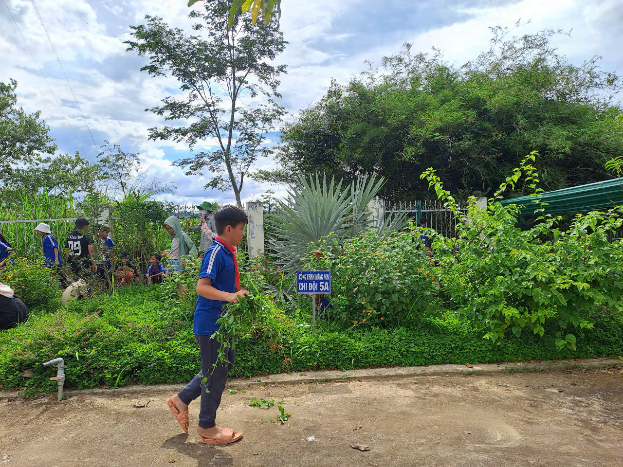 Tập thể thầy cô và học sinh cùng xây dựng khuôn viên nhà trường ngày càng thêm xanh- sạch- đẹp.