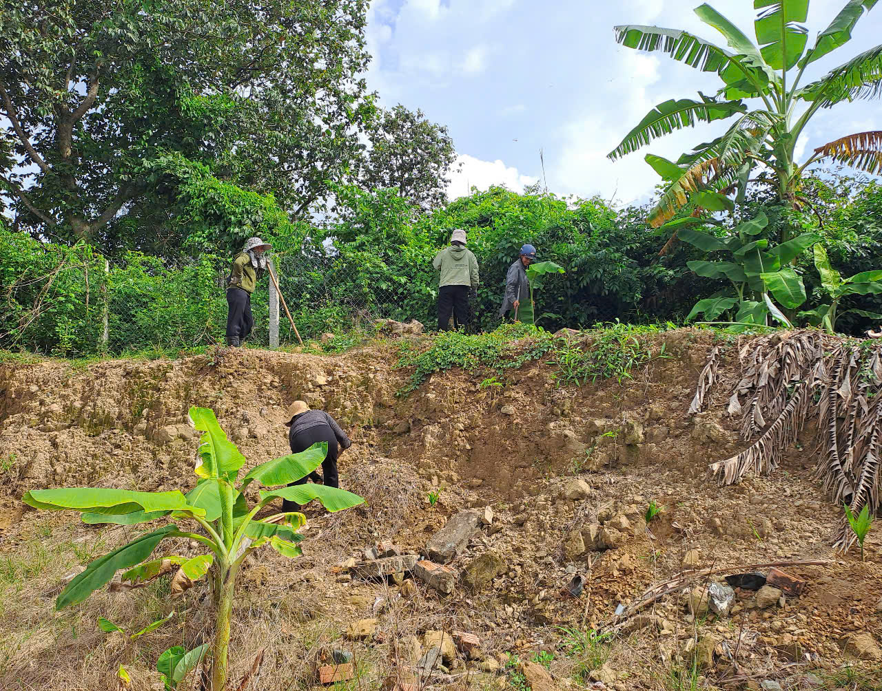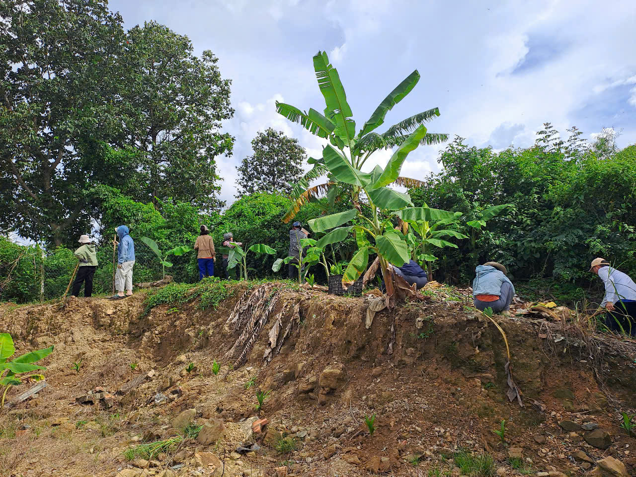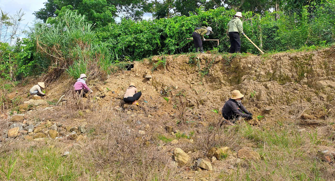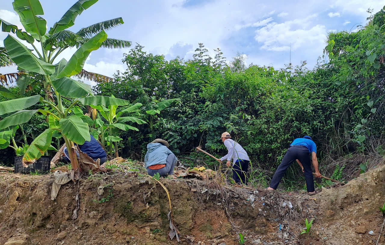 Tập thể CBGVNV cùng học sinh lao động trồng cây và dọn cỏ khuôn viên trường